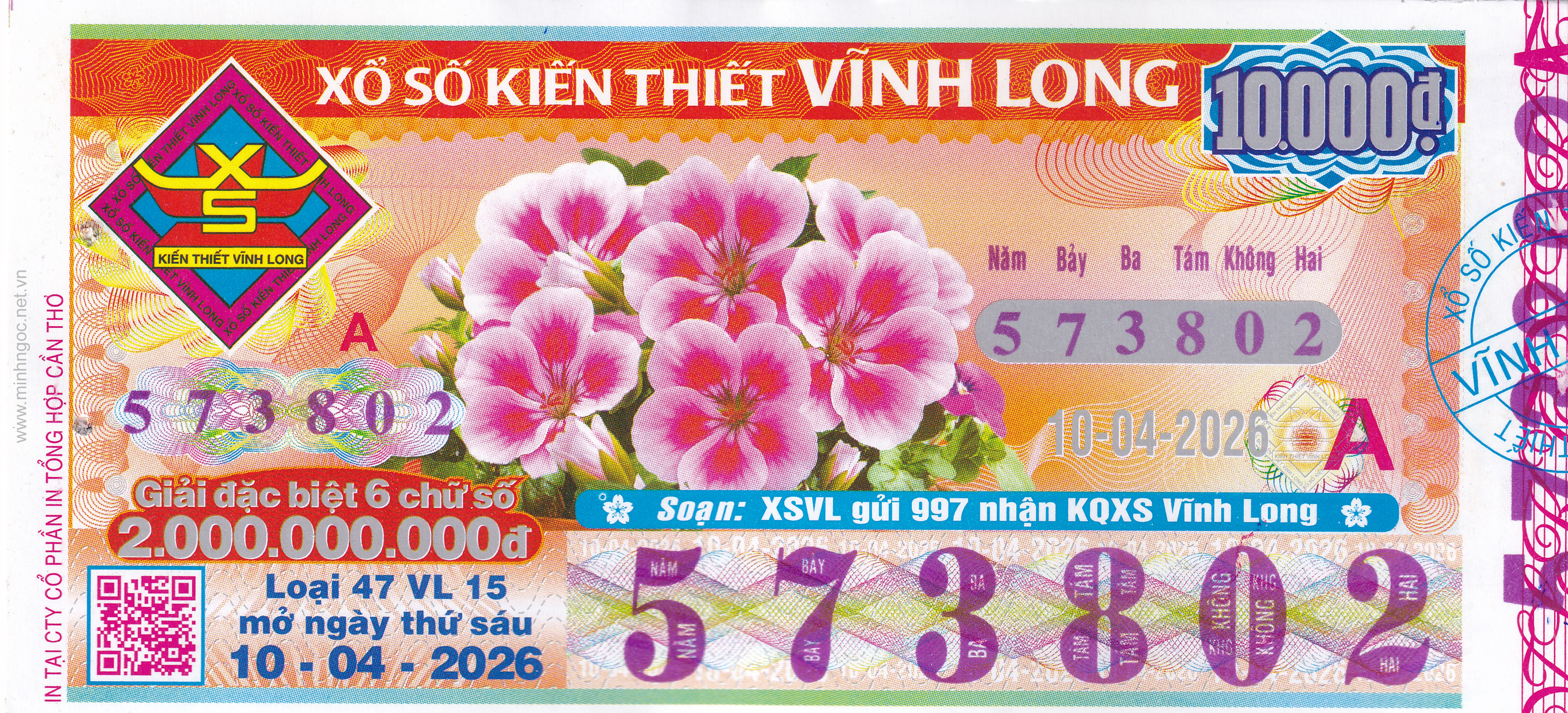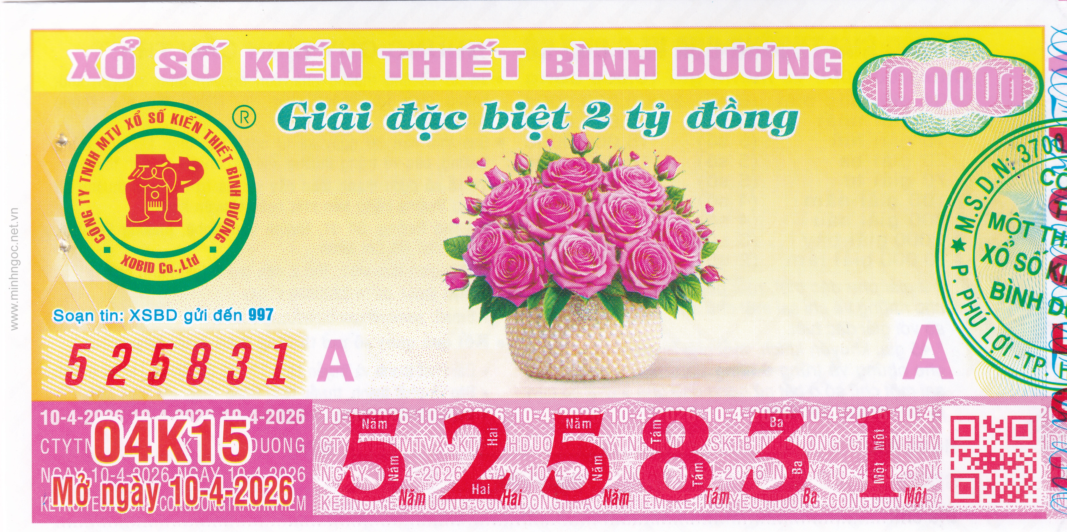 Mẫu vé số Miền Nam ngày 10/04/2026