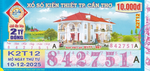Mẫu vé số Miền Nam ngày 10/12/2025