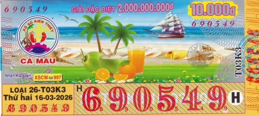 Mẫu vé số Miền Nam ngày 16/03/2026