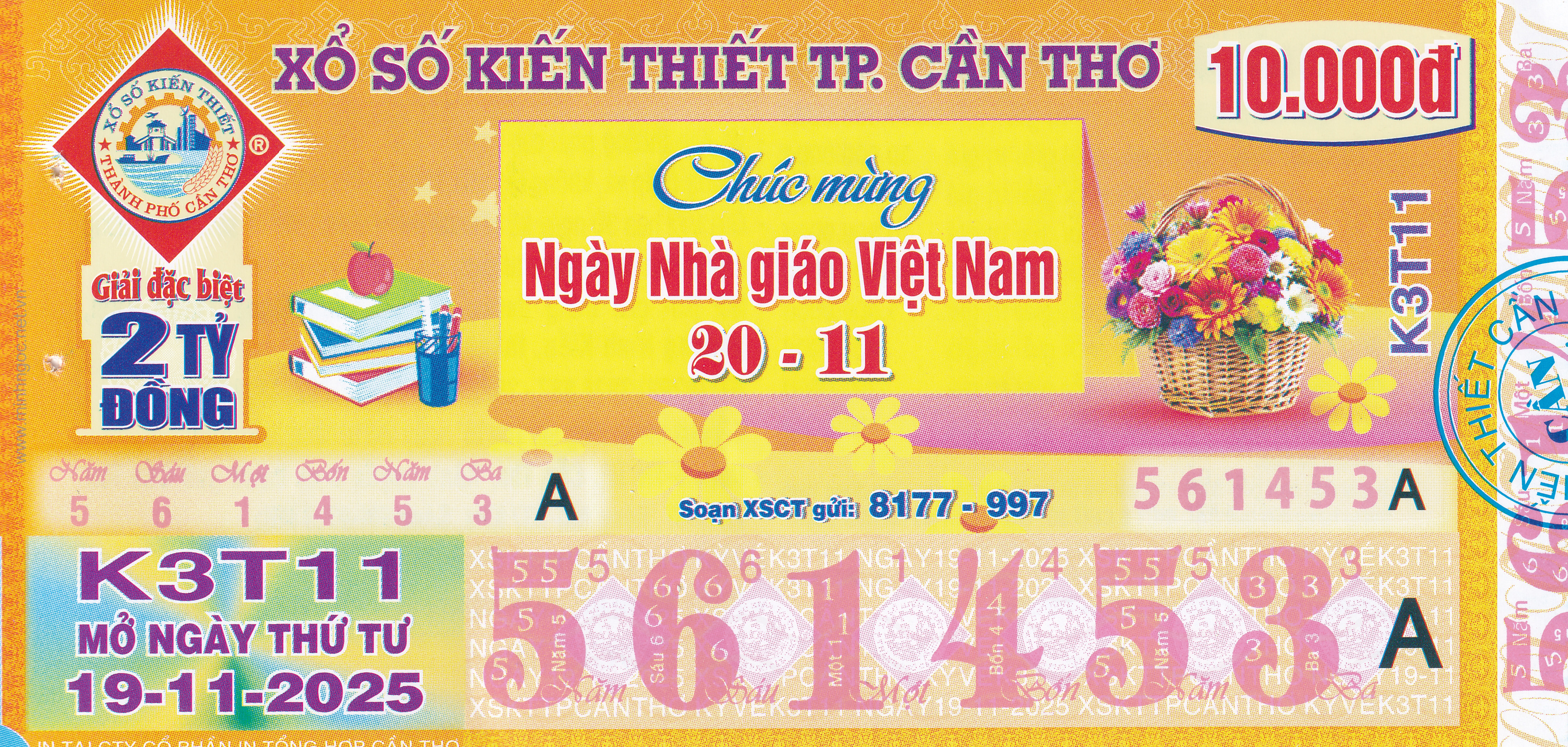 Mẫu vé số Miền Nam ngày 19/11/2025