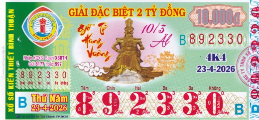 Mẫu vé số Miền Nam ngày 23/04/2026
