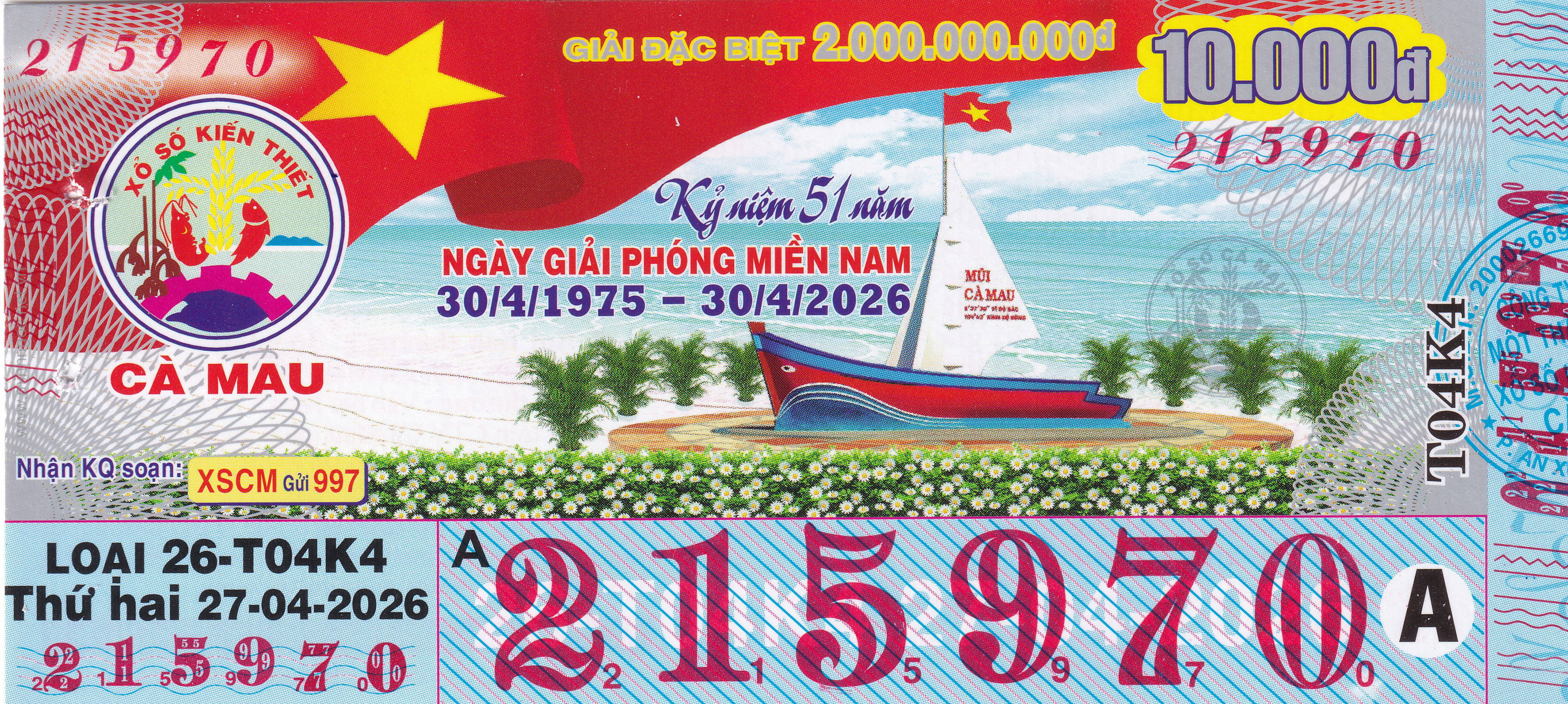 Mẫu vé số Miền Nam ngày 27/04/2026