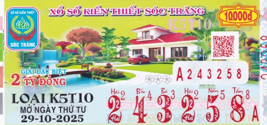 Mẫu vé số Miền Nam ngày 29/10/2025