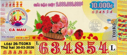 Mẫu vé số Miền Nam ngày 30/03/2026