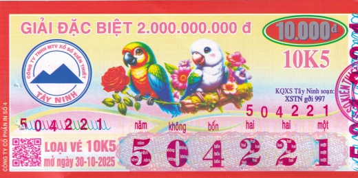 Mẫu vé số Miền Nam ngày 30/10/2025