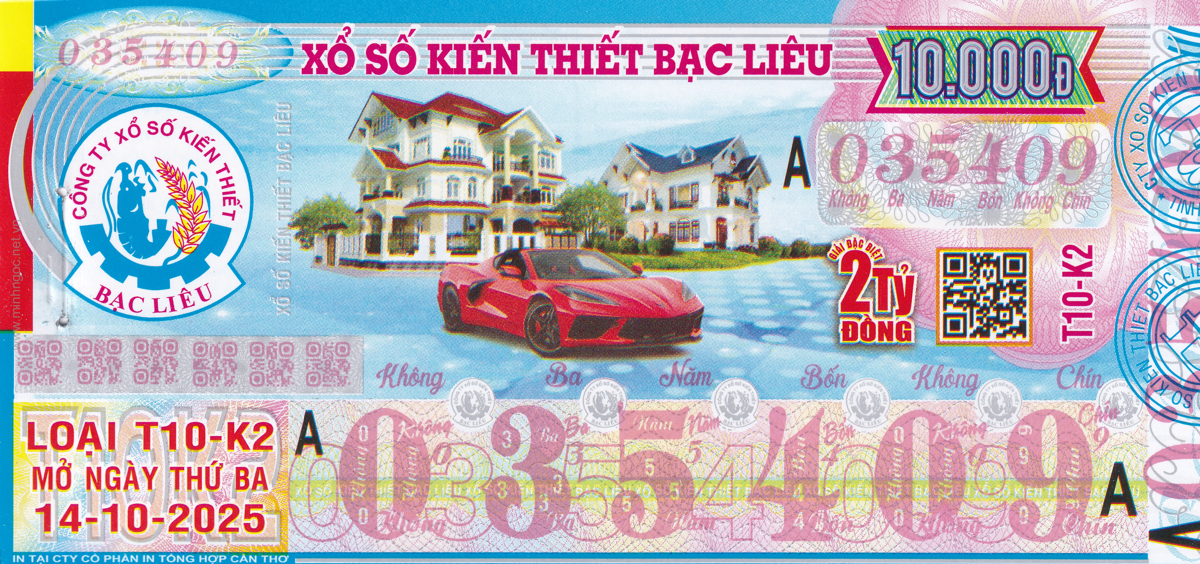 Mẫu vé số Bạc Liêu ngày 14/10/2025