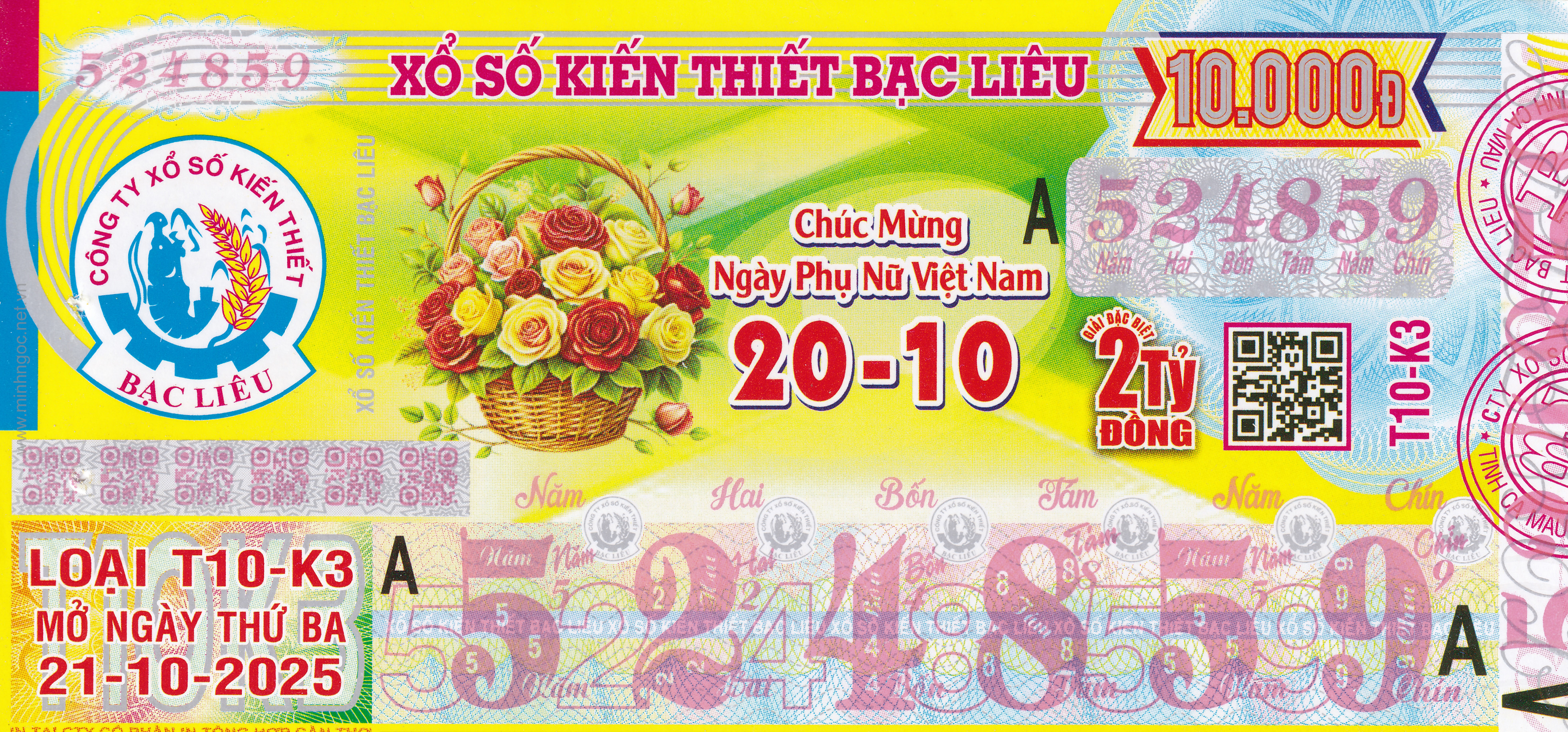 Mẫu vé số Bạc Liêu ngày 21/10/2025