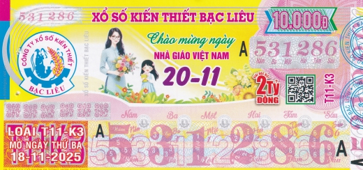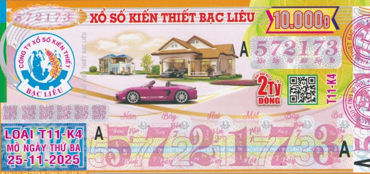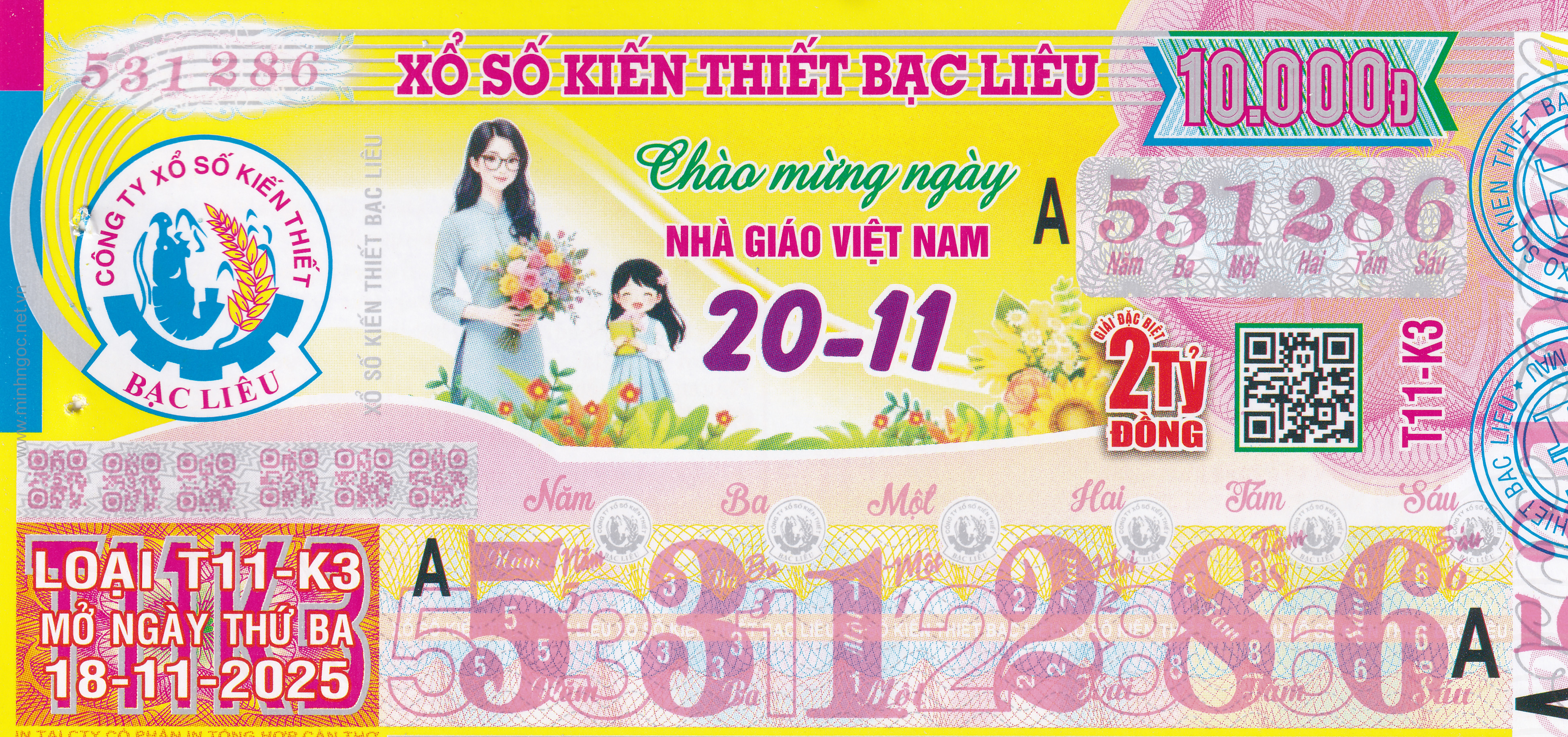 Mẫu vé số Bạc Liêu ngày 30/12/2025