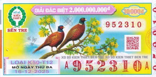 Mẫu vé số Bến Tre ngày 16/12/2025