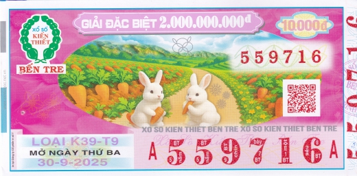 Mẫu vé số Bến Tre ngày 30/09/2025