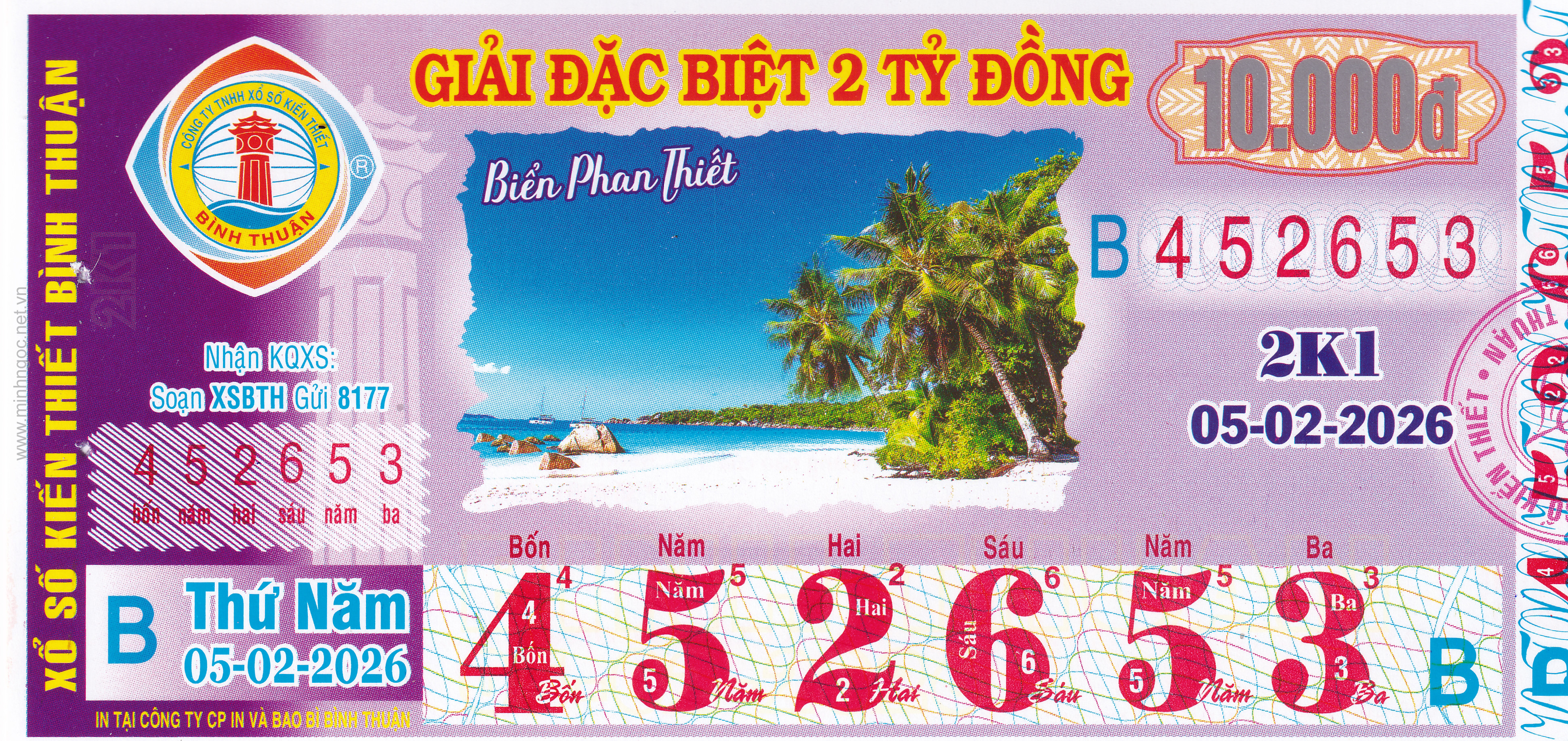 Mẫu vé số Bình Thuận ngày 05/03/2026