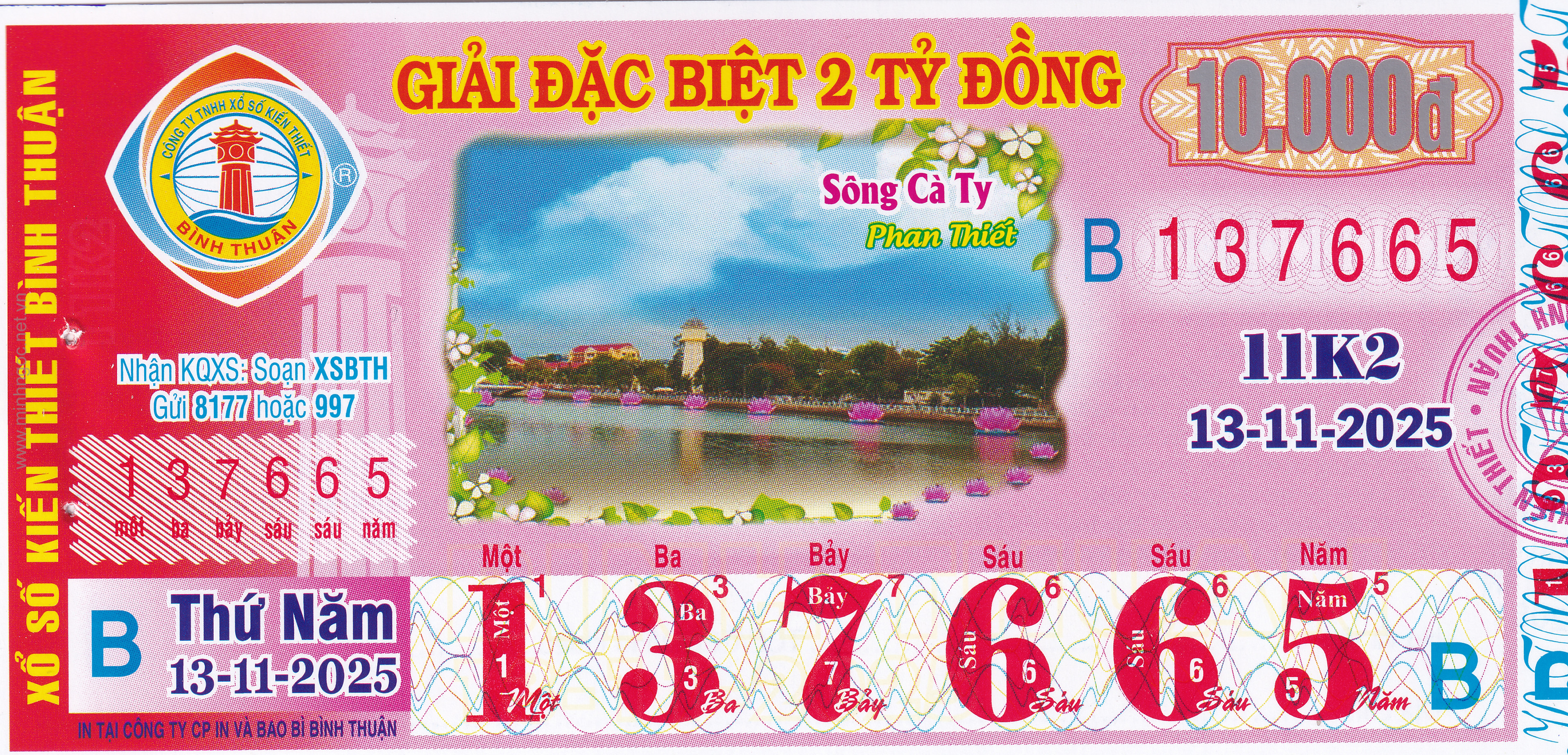 Mẫu vé số Bình Thuận ngày 13/11/2025