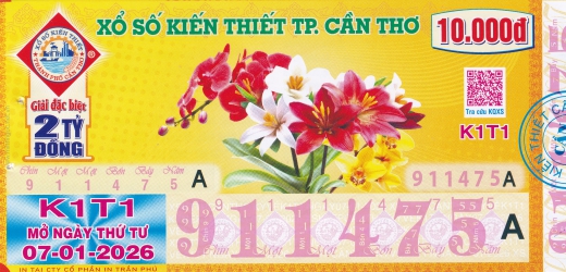 Mẫu vé số Cần Thơ ngày 07/01/2026