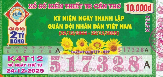 Mẫu vé số Cần Thơ ngày 24/12/2025