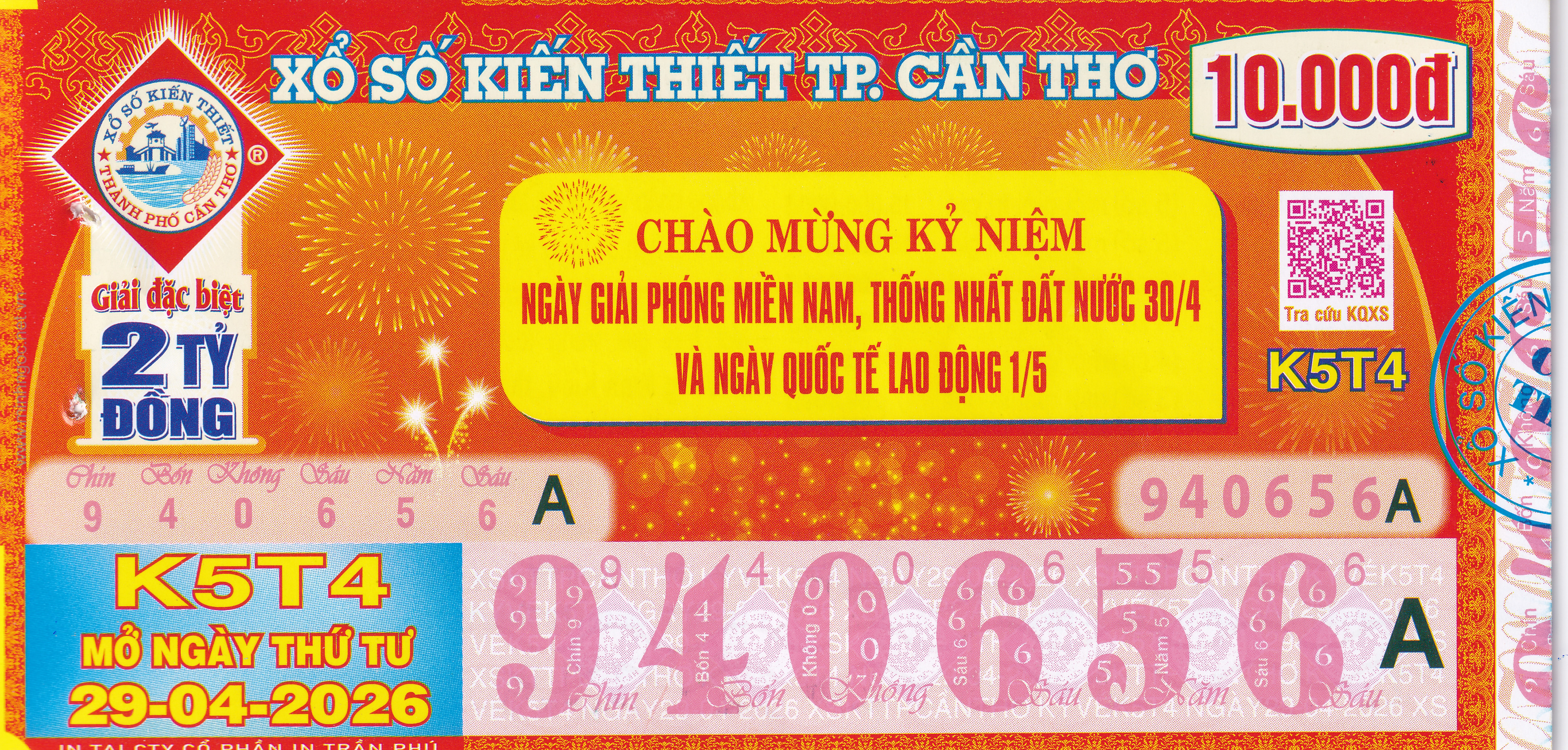 Mẫu vé số Cần Thơ ngày 29/04/2026