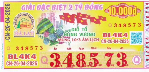 Mẫu vé số Đà Lạt ngày 26/04/2026