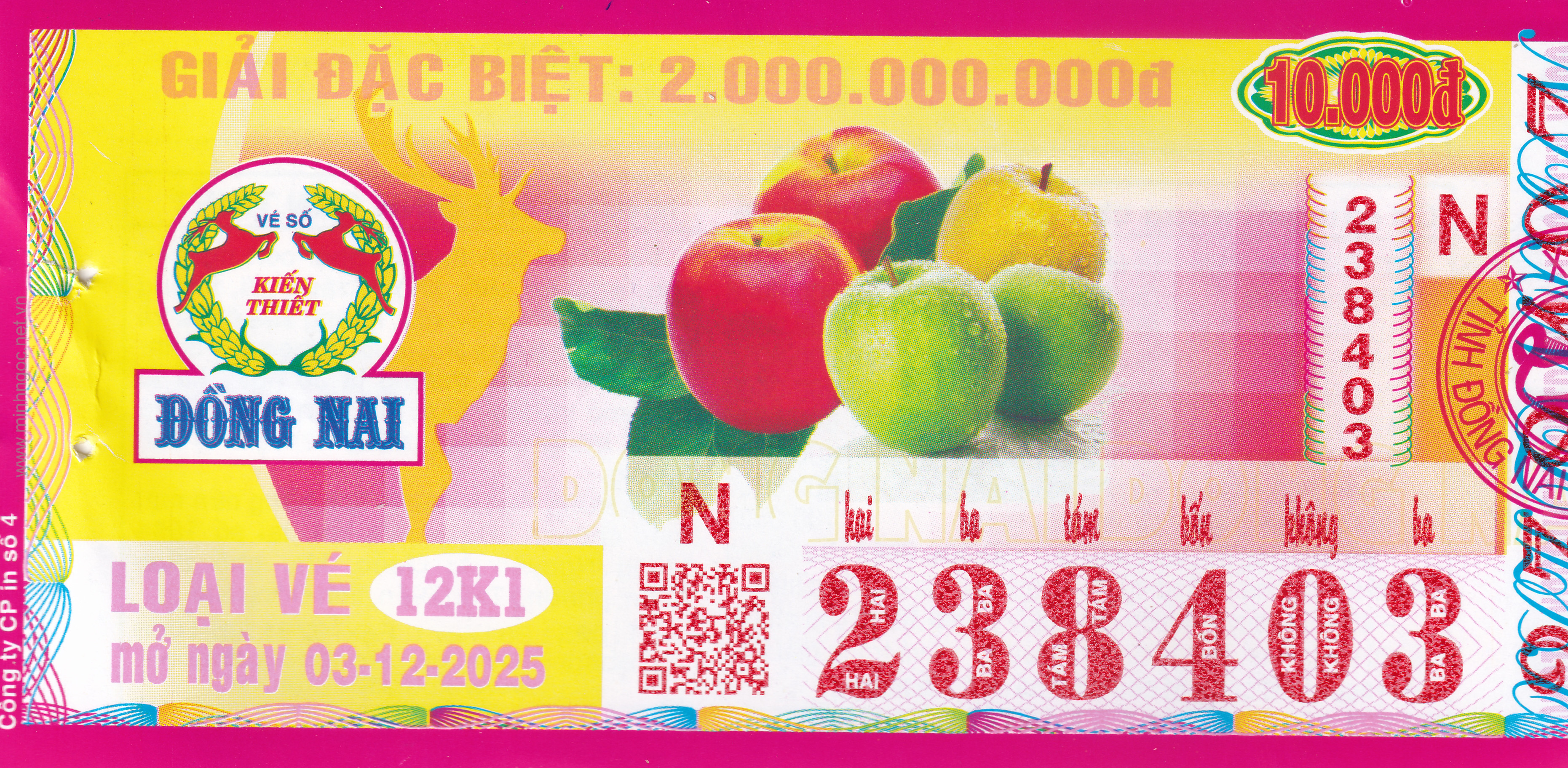 Mẫu vé số Đồng Nai ngày 03/12/2025