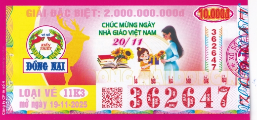 Mẫu vé số Đồng Nai ngày 19/11/2025