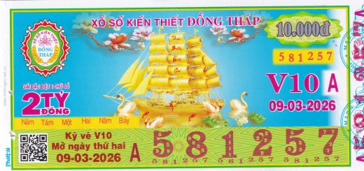 Mẫu vé số Đồng Tháp ngày 09/03/2026