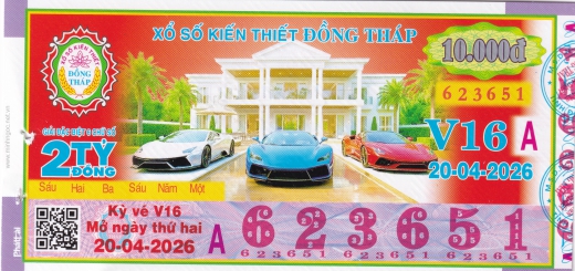 Mẫu vé số Đồng Tháp ngày 20/04/2026