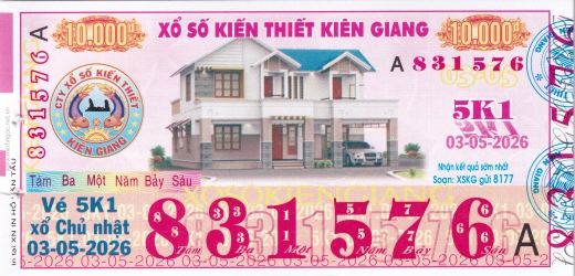 Mẫu vé số Kiên Giang ngày 03/05/2026