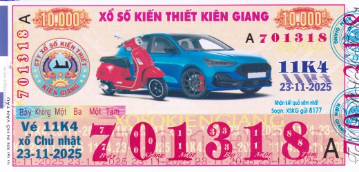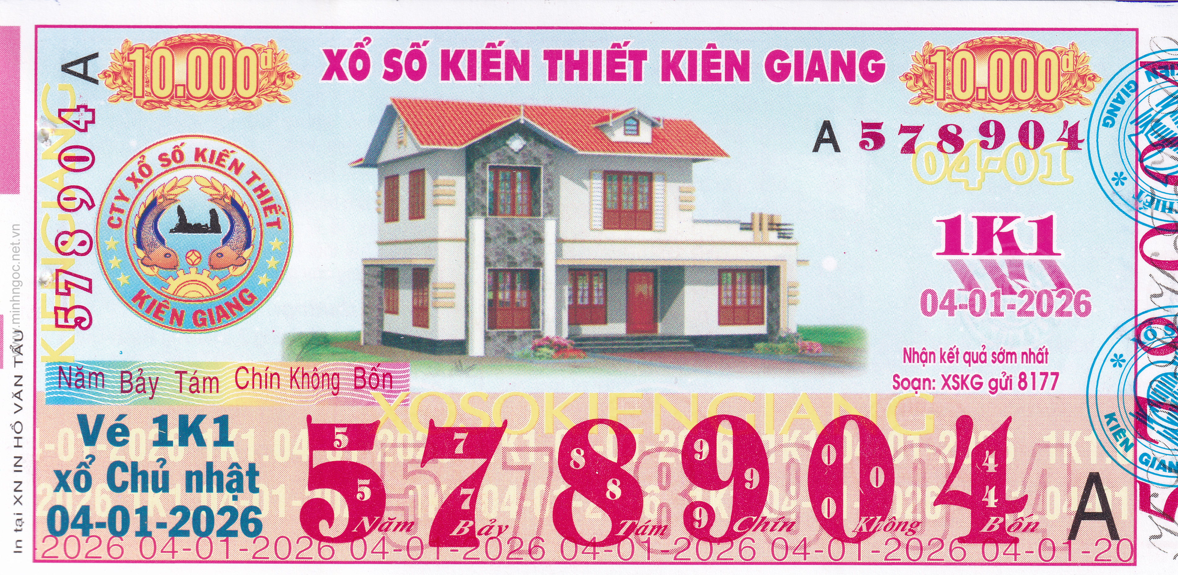 Mẫu vé số Kiên Giang ngày 04/01/2026