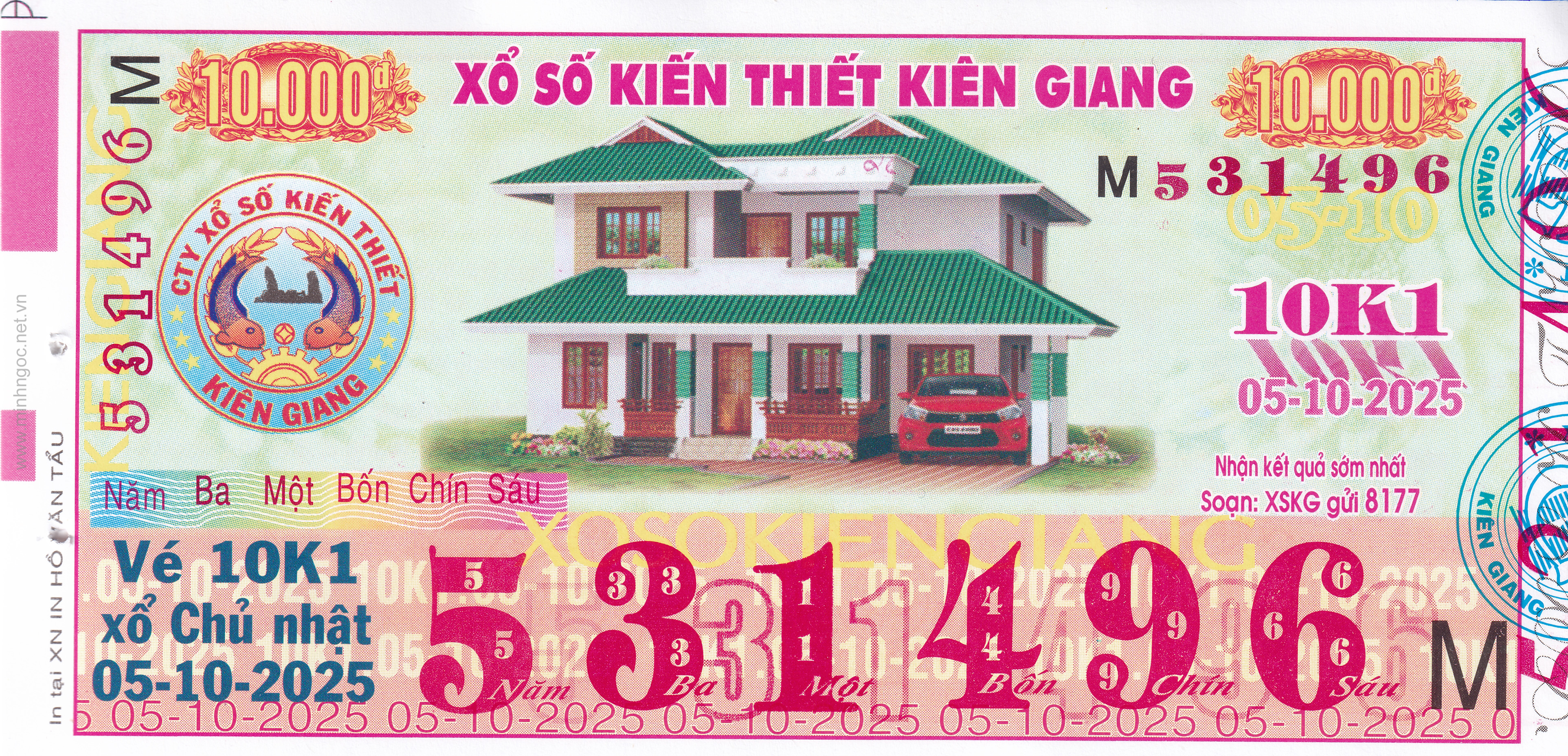 Mẫu vé số Kiên Giang ngày 05/10/2025