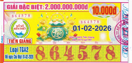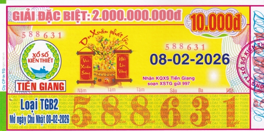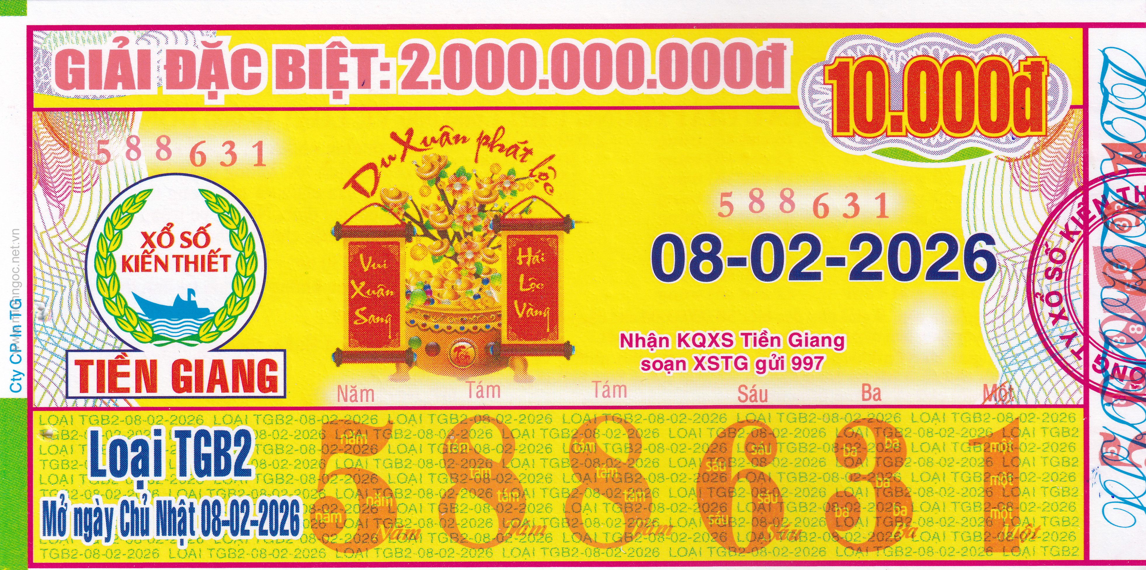 Mẫu vé số Tiền Giang ngày 08/02/2026