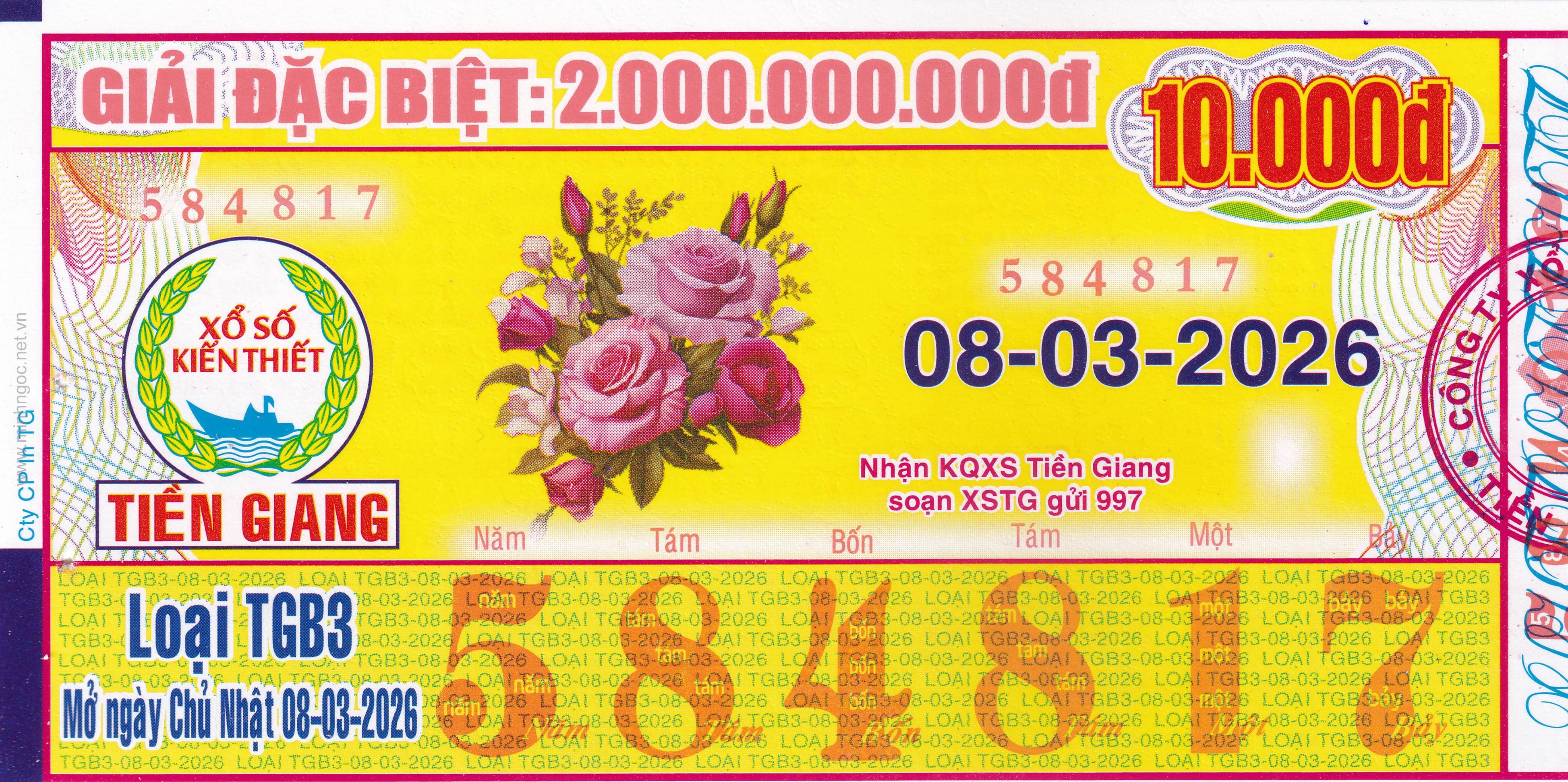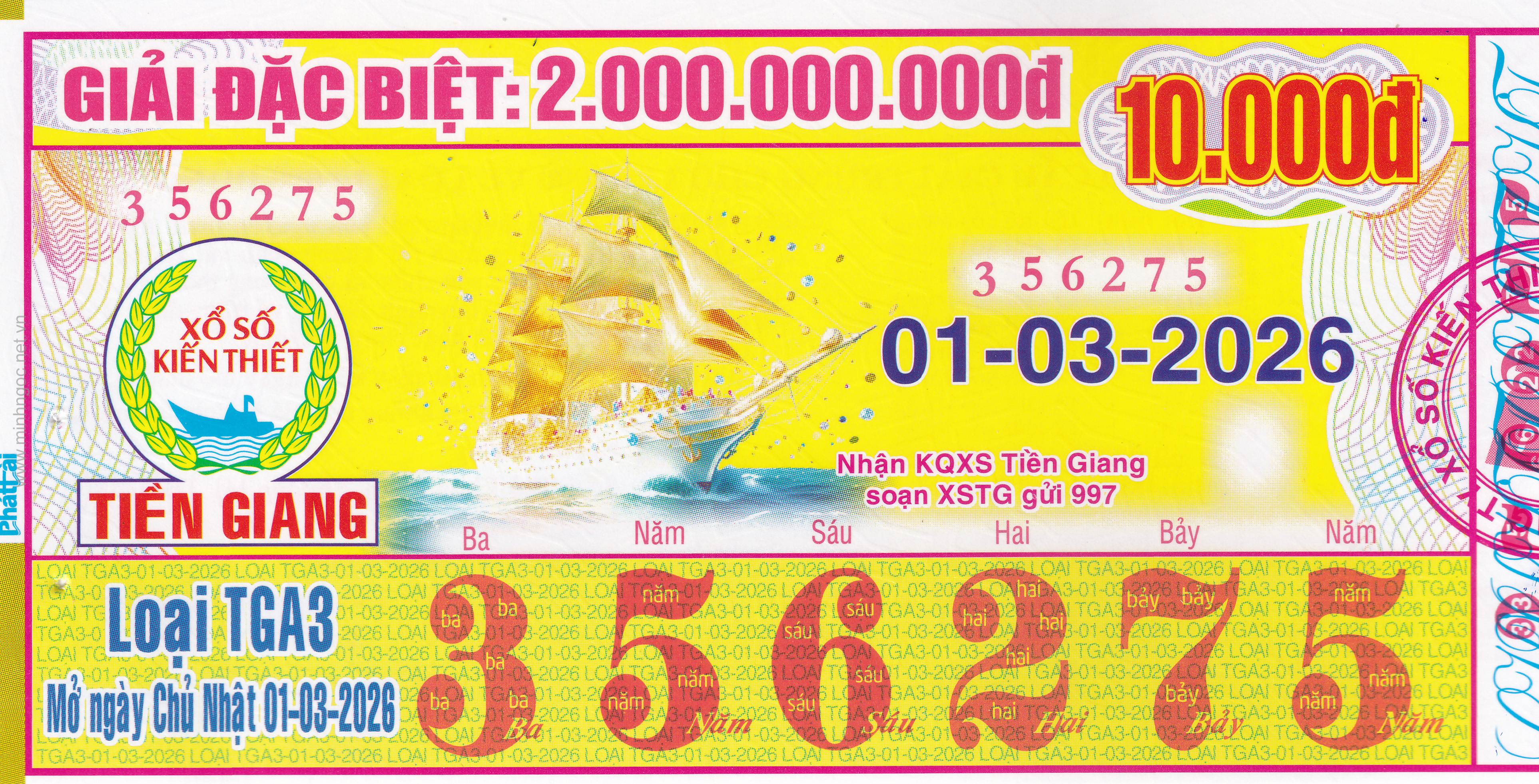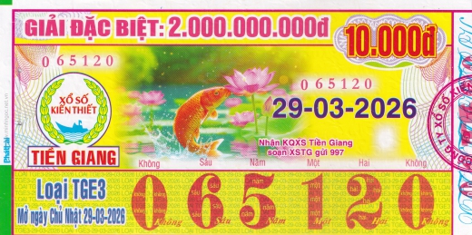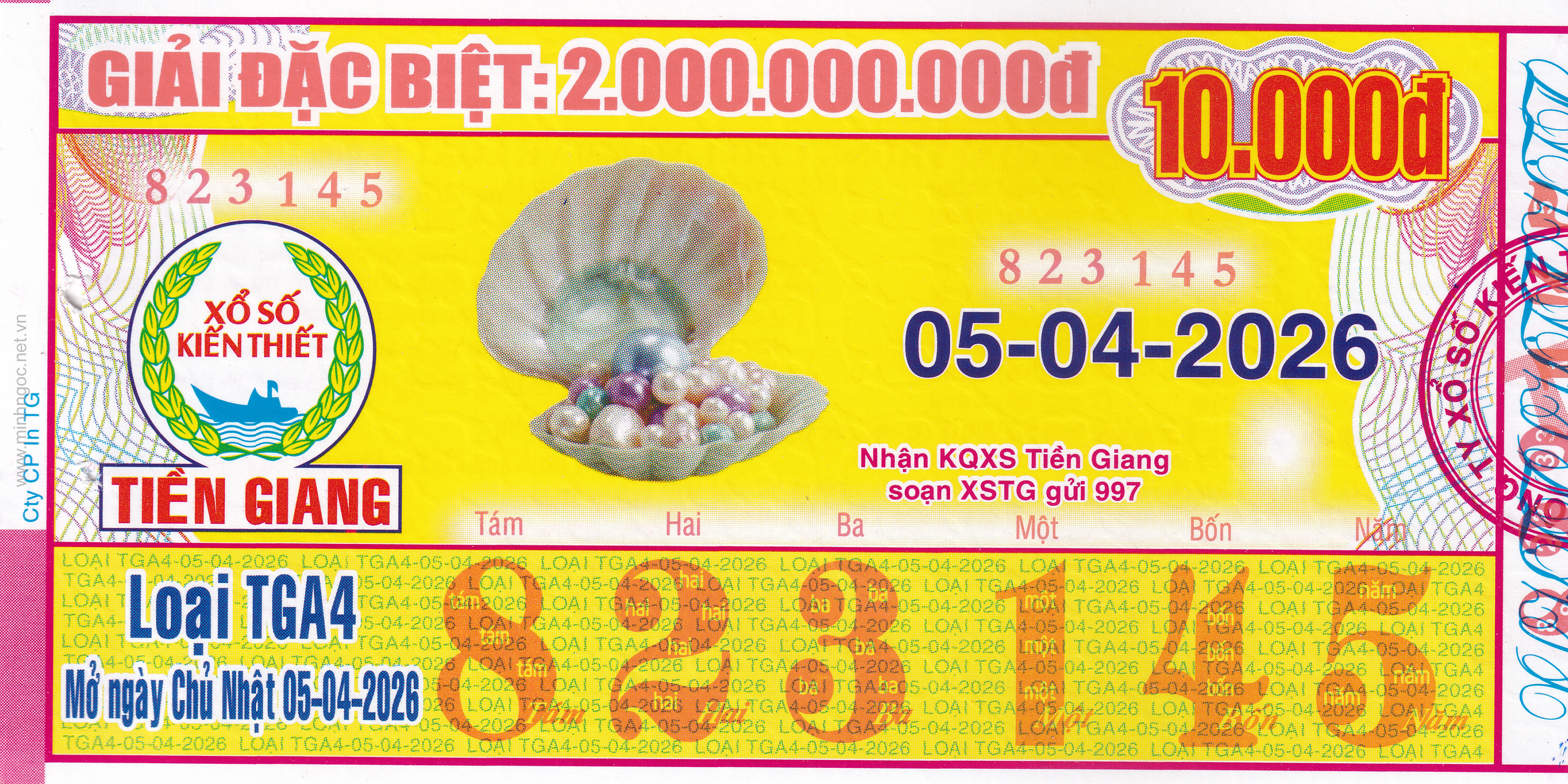 Mẫu vé số Tiền Giang ngày 12/04/2026