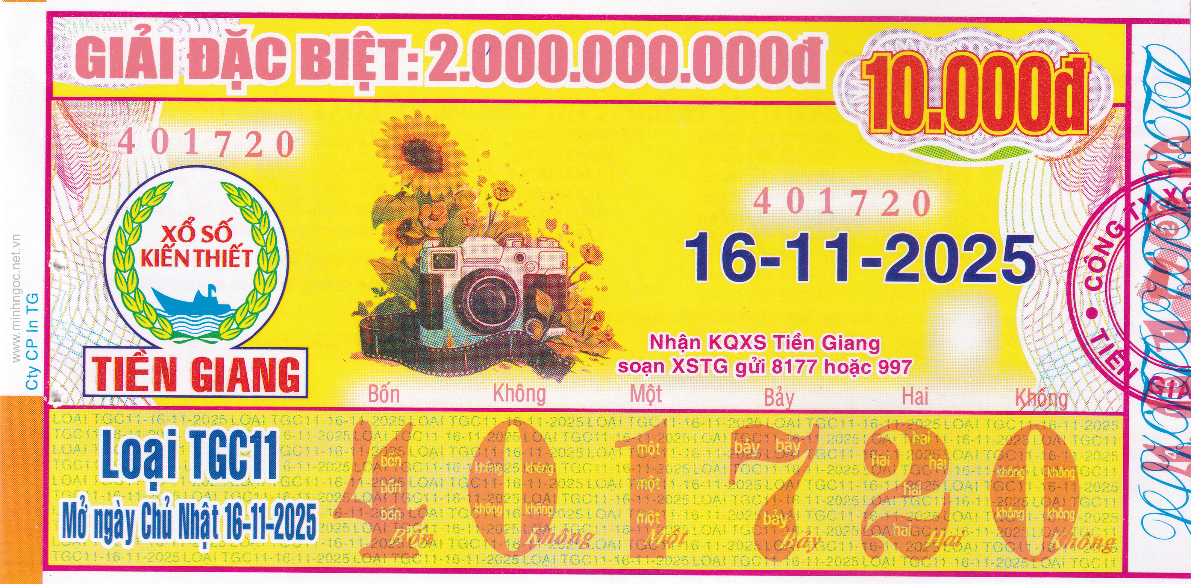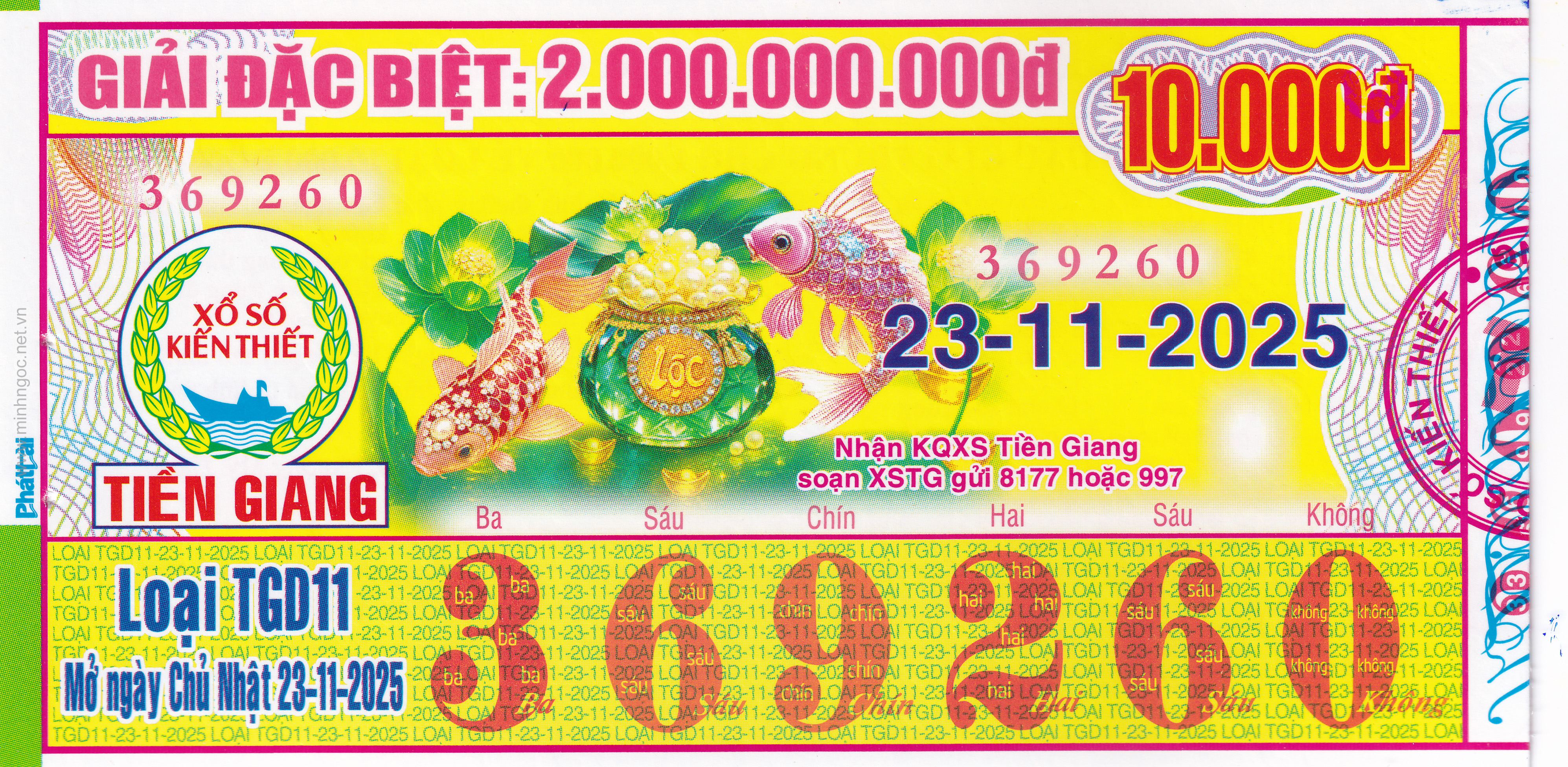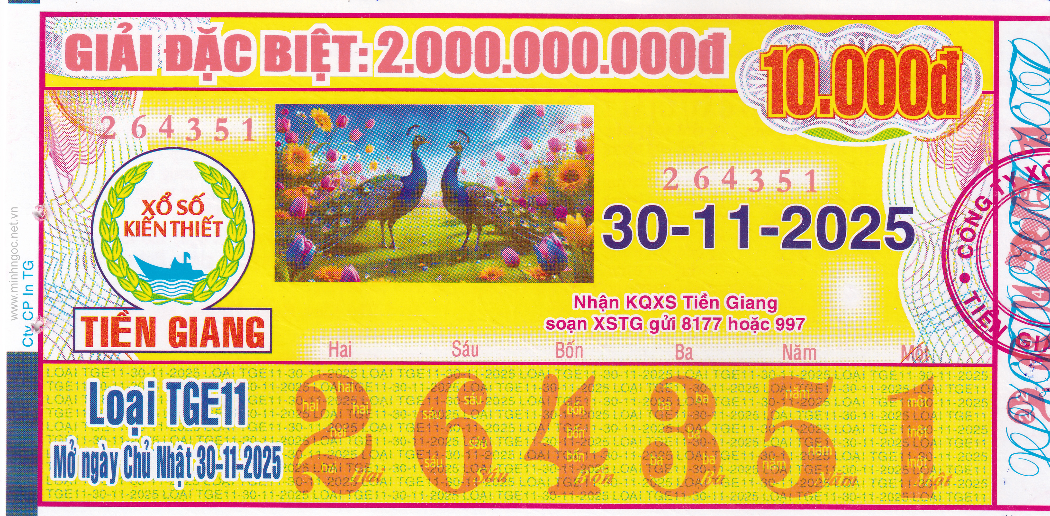 Mẫu vé số Tiền Giang ngày 30/11/2025