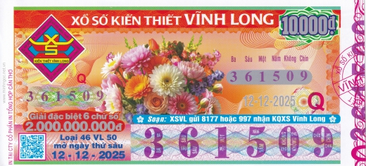 Mẫu vé số Vĩnh Long ngày 09/01/2026